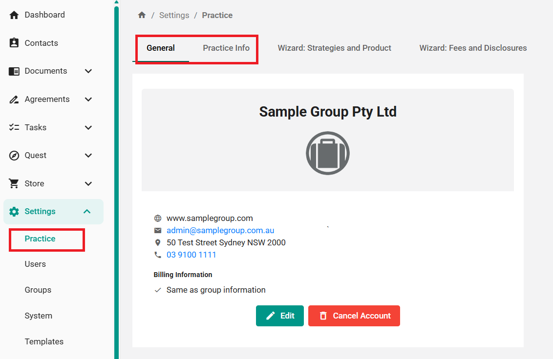 Select Settings > Practice