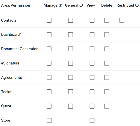 Permissions can be set individually for different access to DASH such as Contacts, User Management and Templates.