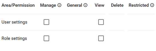 User Management ![]() | Permissions of Manage and View options can be chosen and assigned for both User and Role settings. |